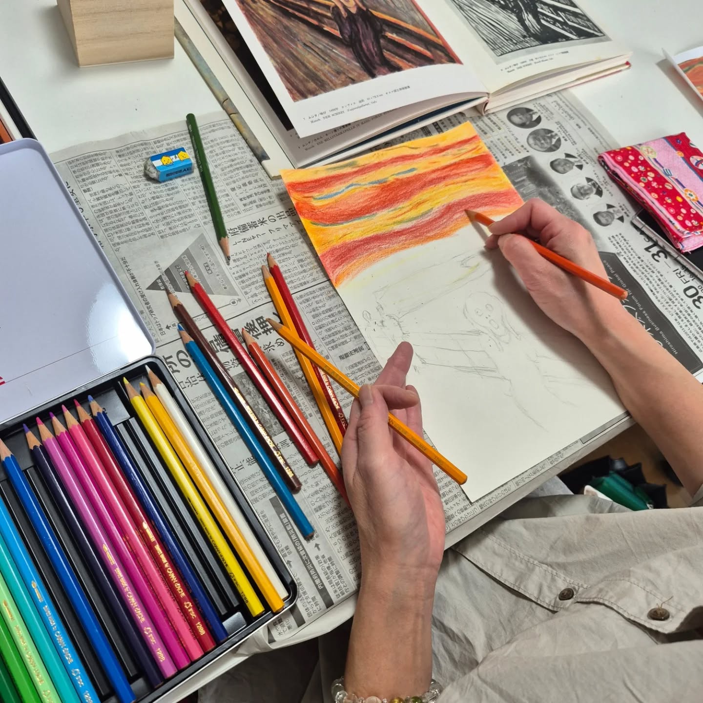 今日は新しい利用者さんに10月4日(土)のアート・フェスタで展示して頂く叫びのオマージュ作品を制作して頂きました。 別の利用者さんはポストカード作りに専念されていました。 #アトリエからふる #アート #障がい者 #生活介護 #東大阪